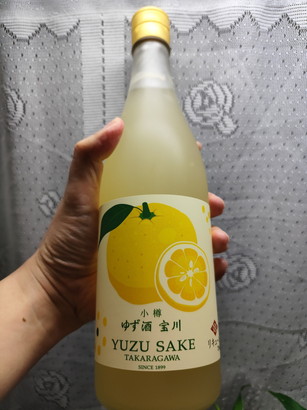 ゆずのお酒2種あるけど、「あらごしシリーズ」がお店に売ってたりする、あらごしゆずの方かな。